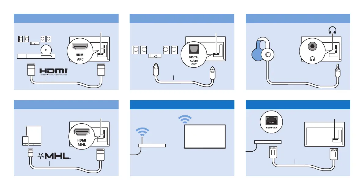 Philips 9002 Series - Connecting Audio and Network Devices; HDMI ARC, Optical Audio, and Network Setup
