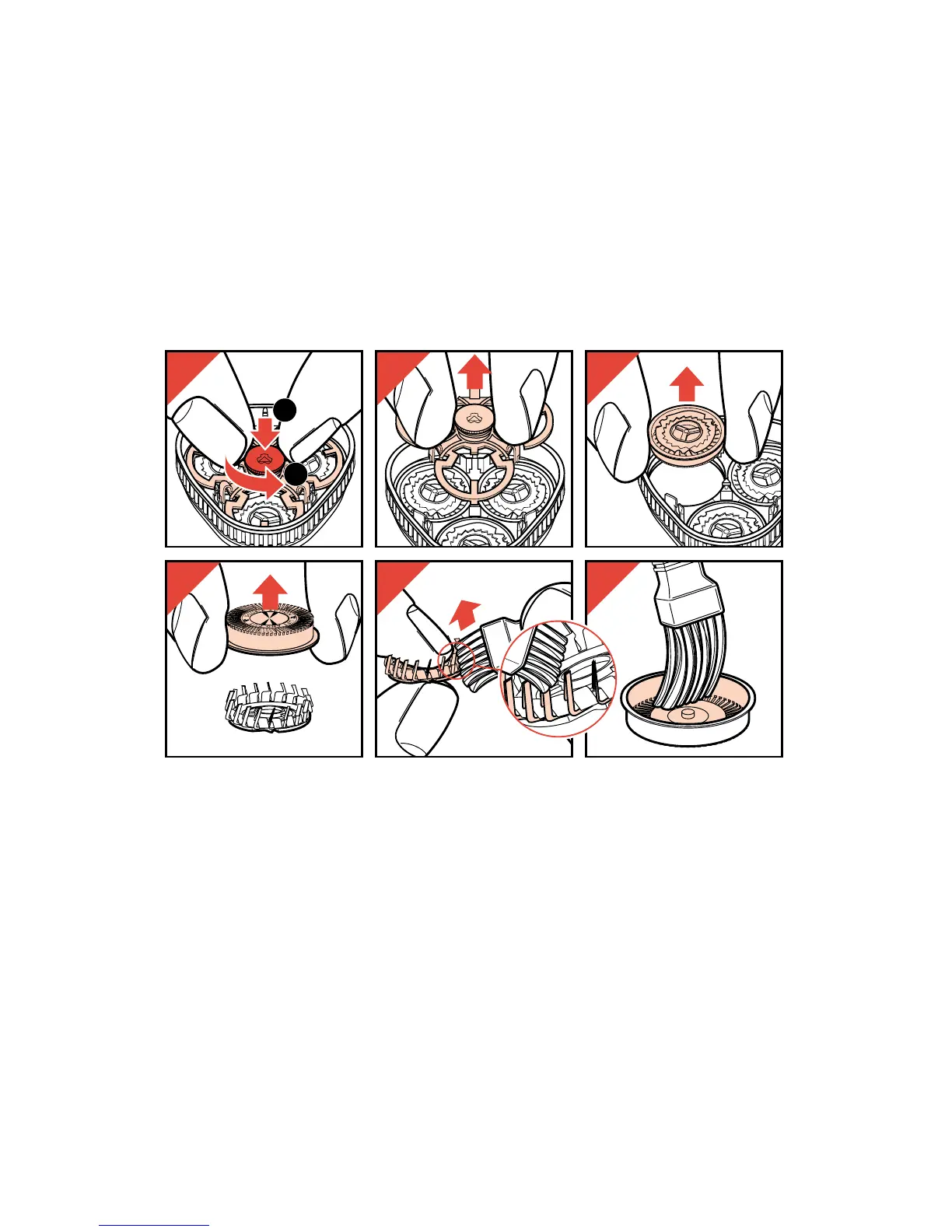 - Først rengøres rillerne i lamelkapperne og skæg-