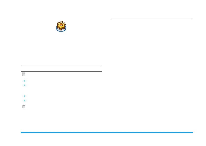 (sounds, time and date, security, etc.) to configure