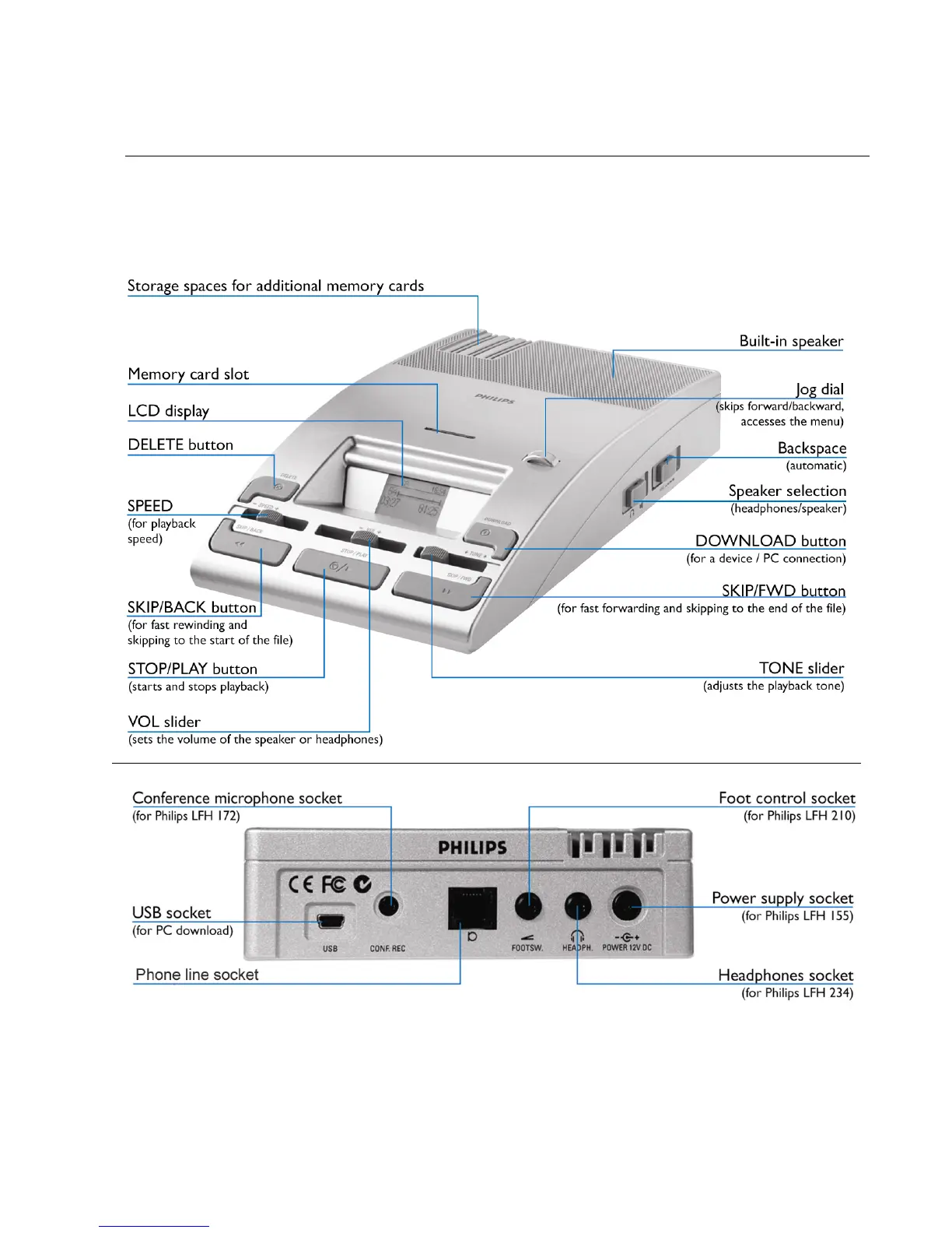 The following graphic shows the device and the names of the various parts.