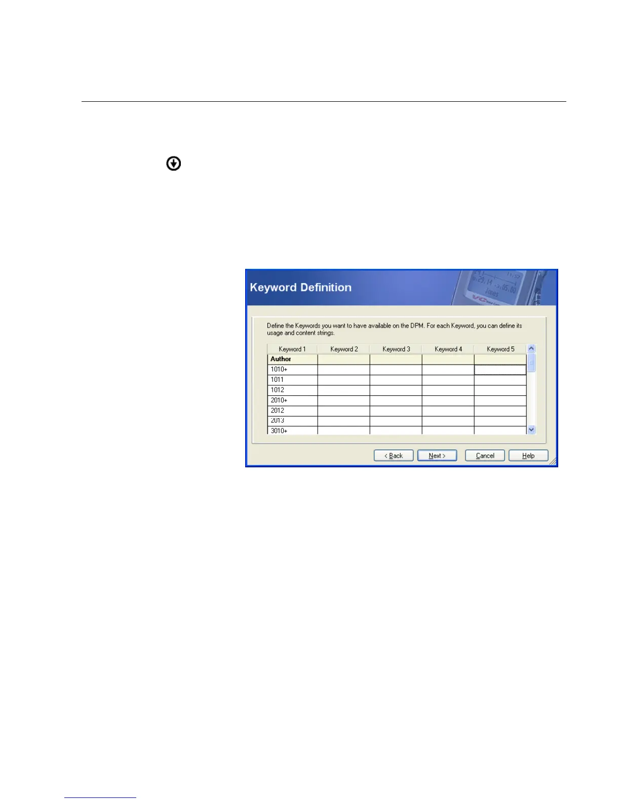 3. En la página ”Keyword Definition” defina todos los necesarios IDs de usuario. ”Keyword
