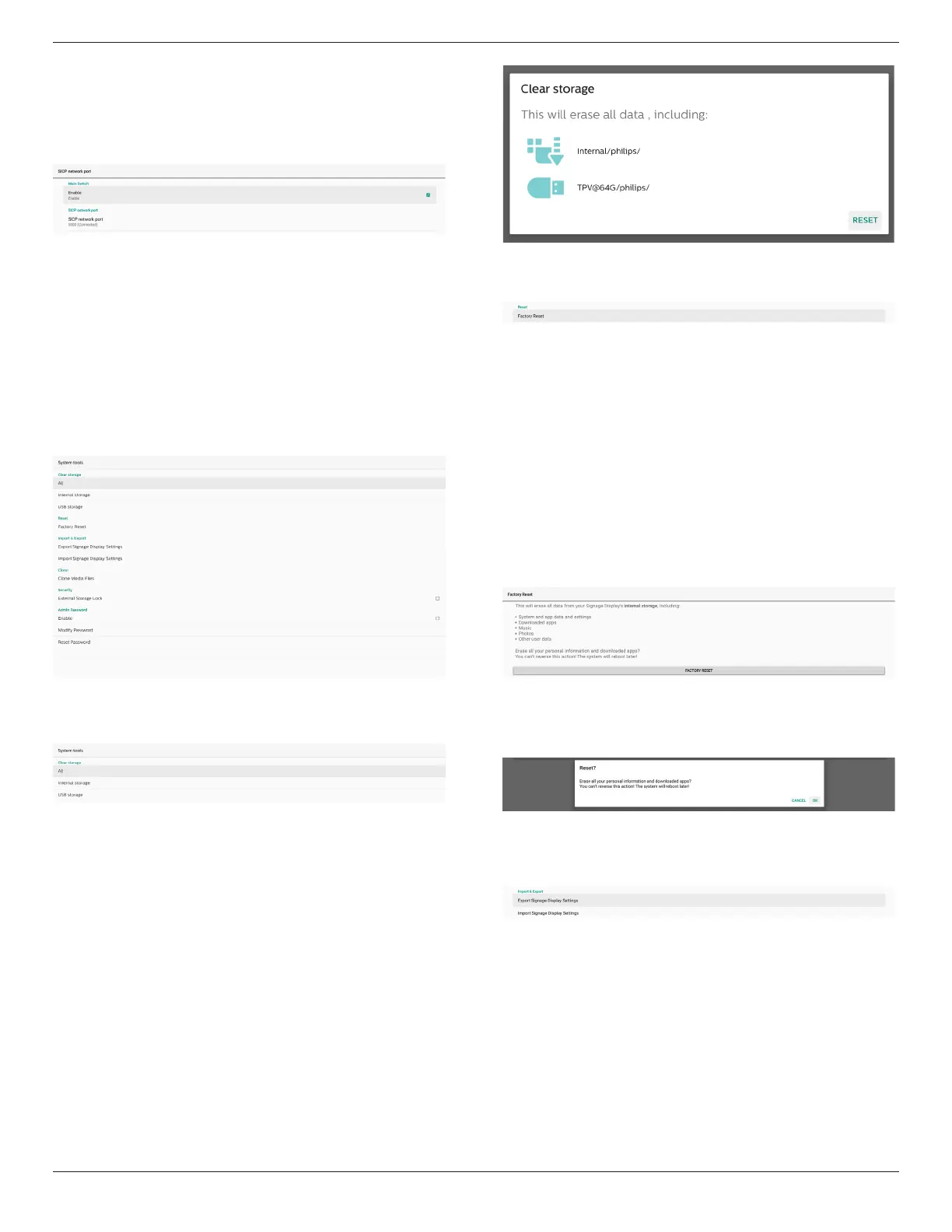 Settings -> Signage Display -> System Tools -> Clear Storage