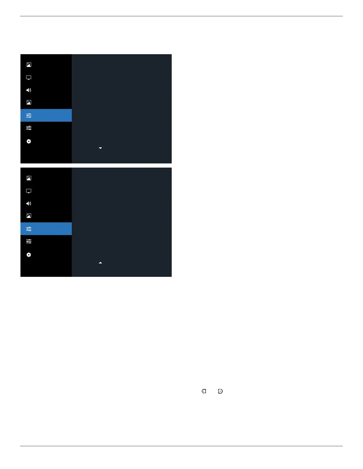 Reset all settings in the OSD menu of {Picture}, {Screen}, {Audio},