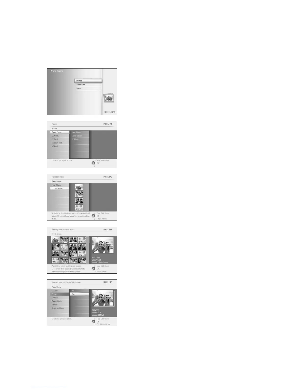 If you need to free up space on the PhotoFrame™ or a memory card you can delete photos.