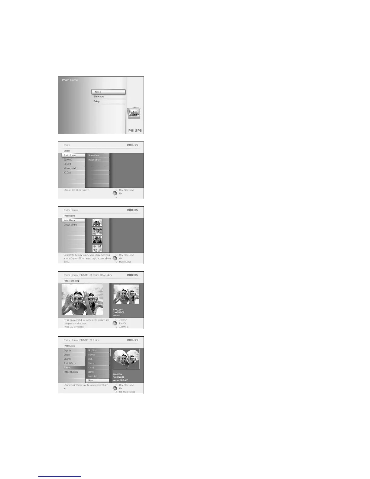 Press the OK button to select the photo to add the frame to.