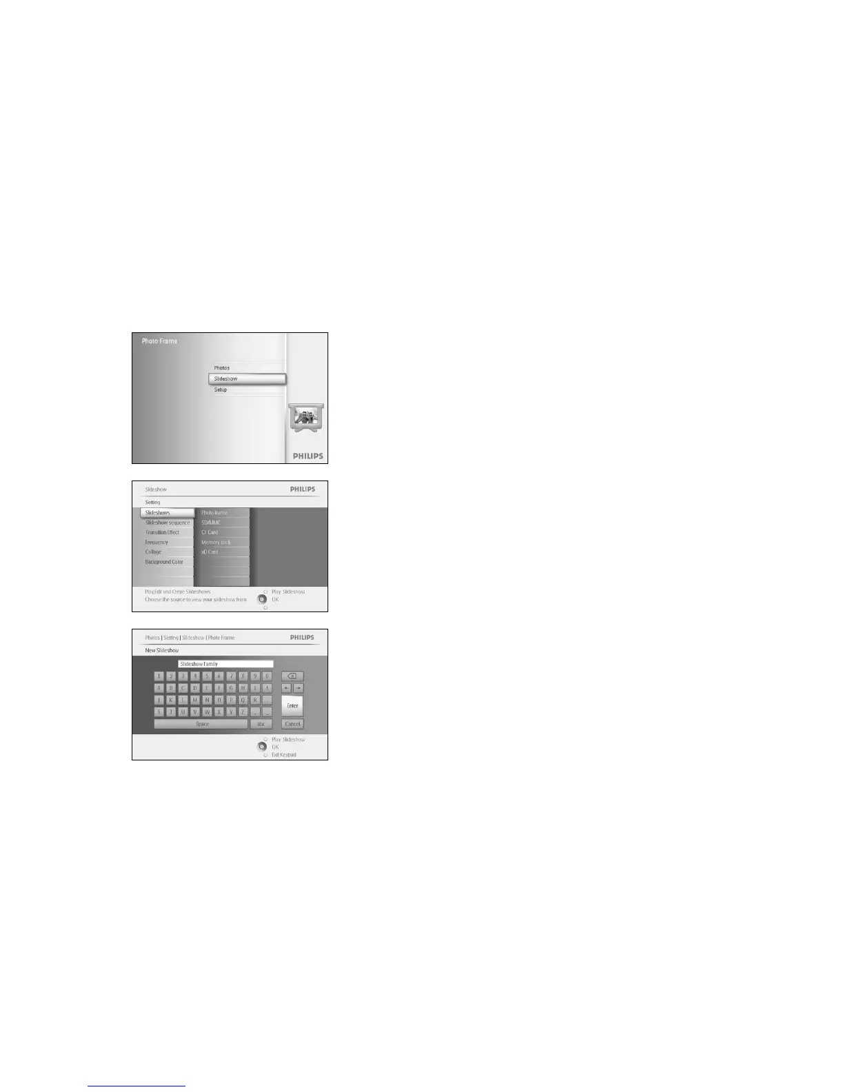 frequency that determines, how long a photo remains on screen, select transition effect, how