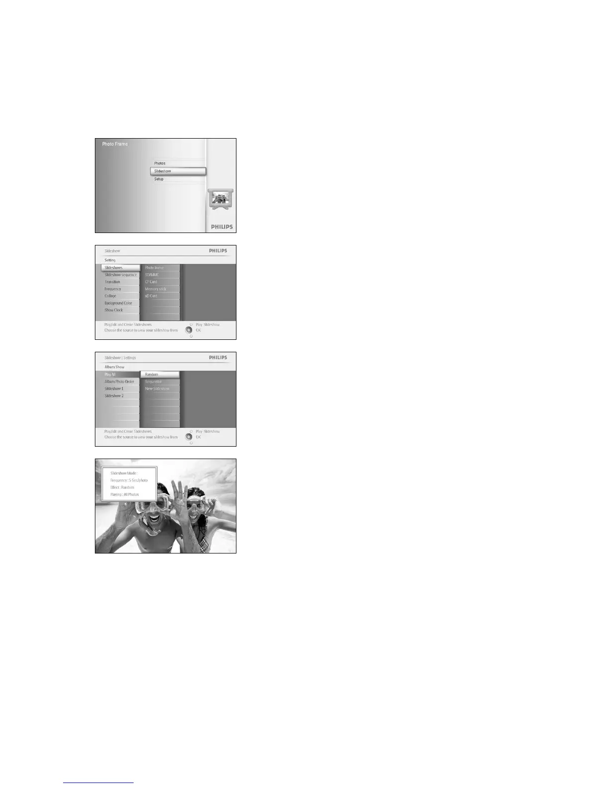 Slideshow menu shows the settings available for slideshows.