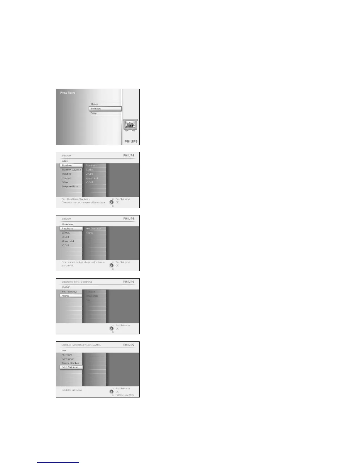 Deleting a slideshow will NOT remove the images from the PhotoFrame™, simply remove the