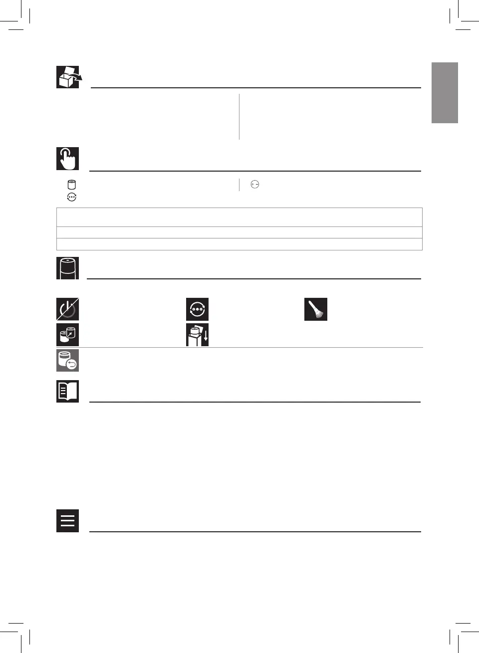 The visual instructions are divided into dierent topics, illustrated by the following graphic icons.