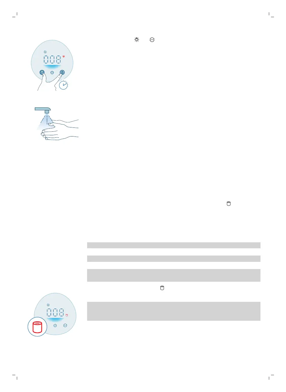 8 Press and hold the and button for 3 seconds to reset the filter cleaning