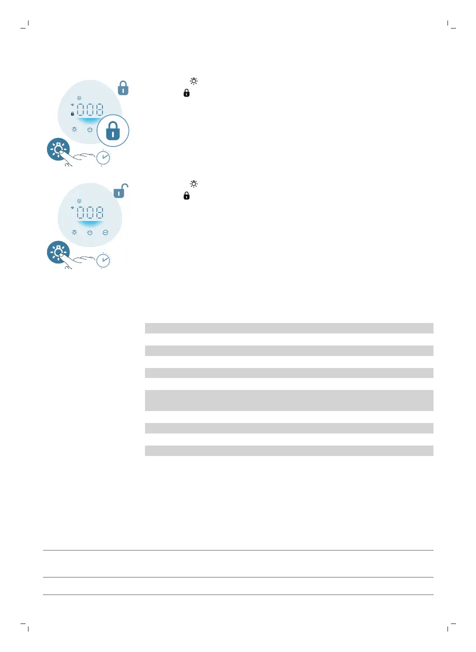 2 Press the button for 3 seconds again to deactivate the child lock.