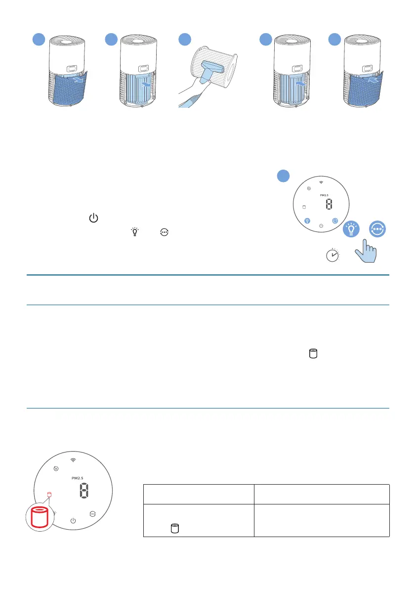 When the lter need to be replaced, the lter replacement alert lights up red.