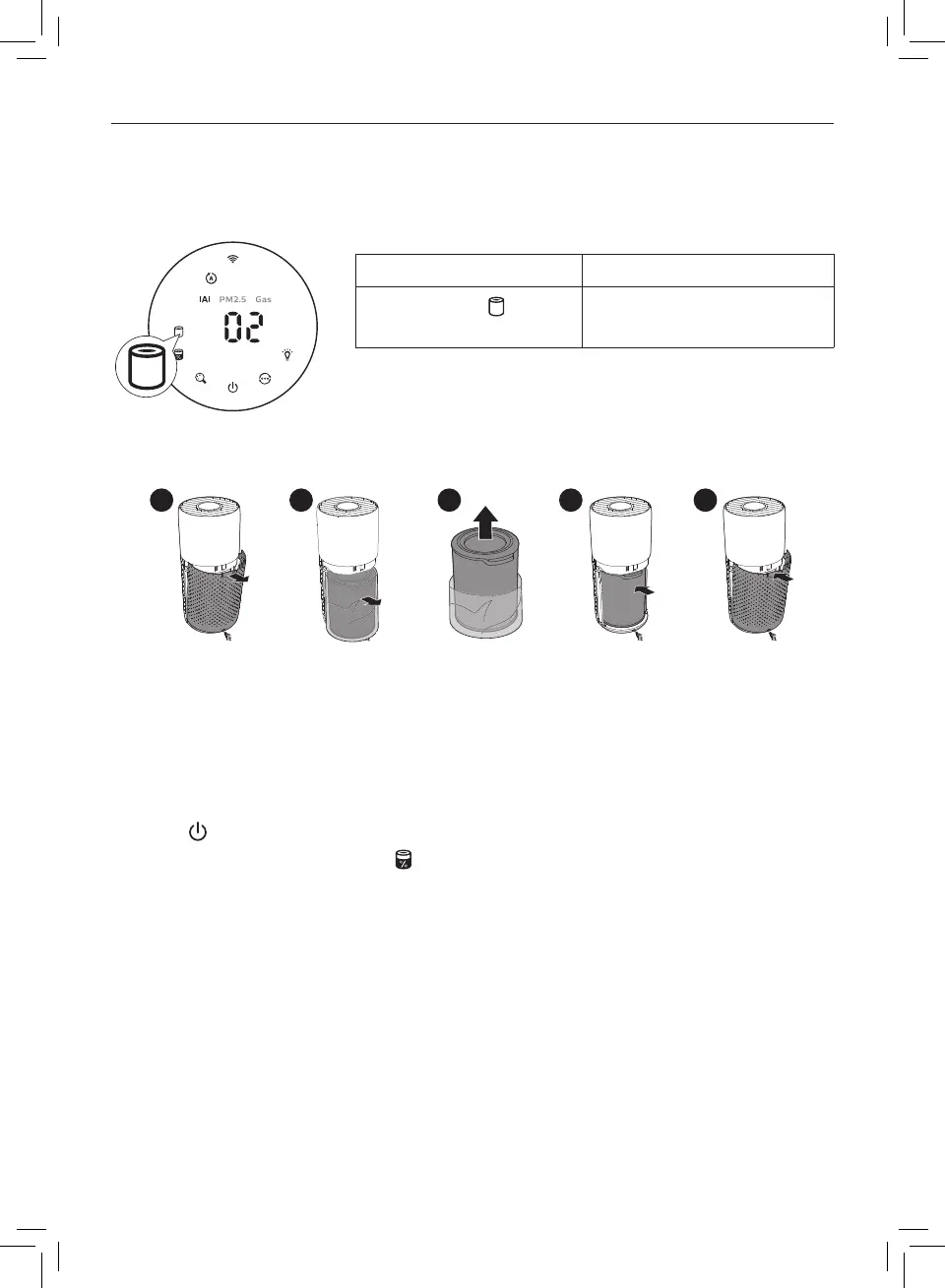 更換濾網前,必須關閉空氣清新機,並將插頭從電源插座拔出。