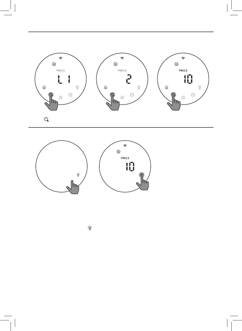 面板查看空气情况。如果没有进一步操作,指示灯和控制面板将再次变暗,继续保