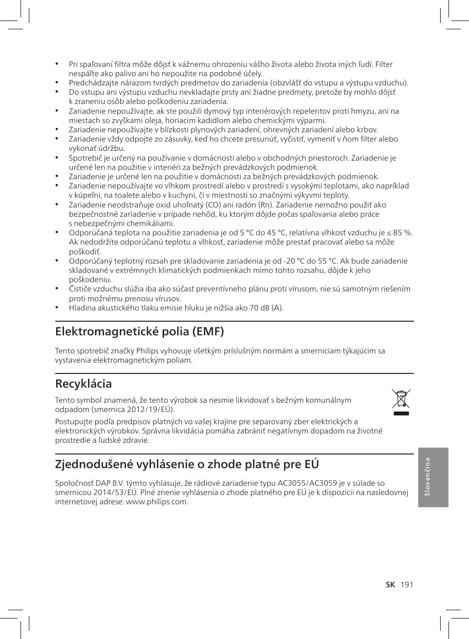 Spoločnosť DAP B.V. týmto vyhlasuje, že rádiové zariadenie typu AC3055/AC3059 je v súlade so