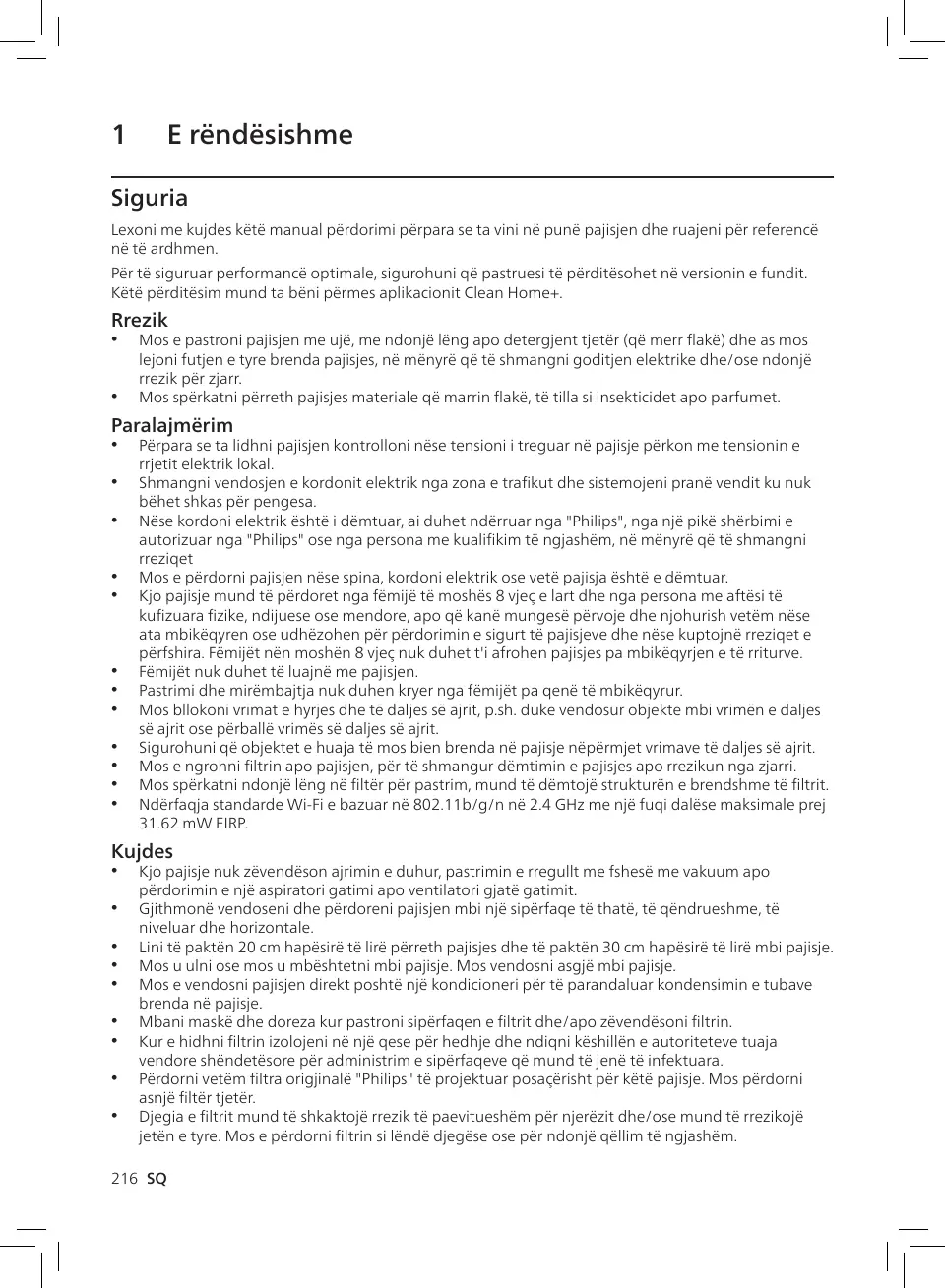 Kjo pajisje nuk zëvendëson ajrimin e duhur, pastrimin e rregullt me fshesë me vakuum apo
