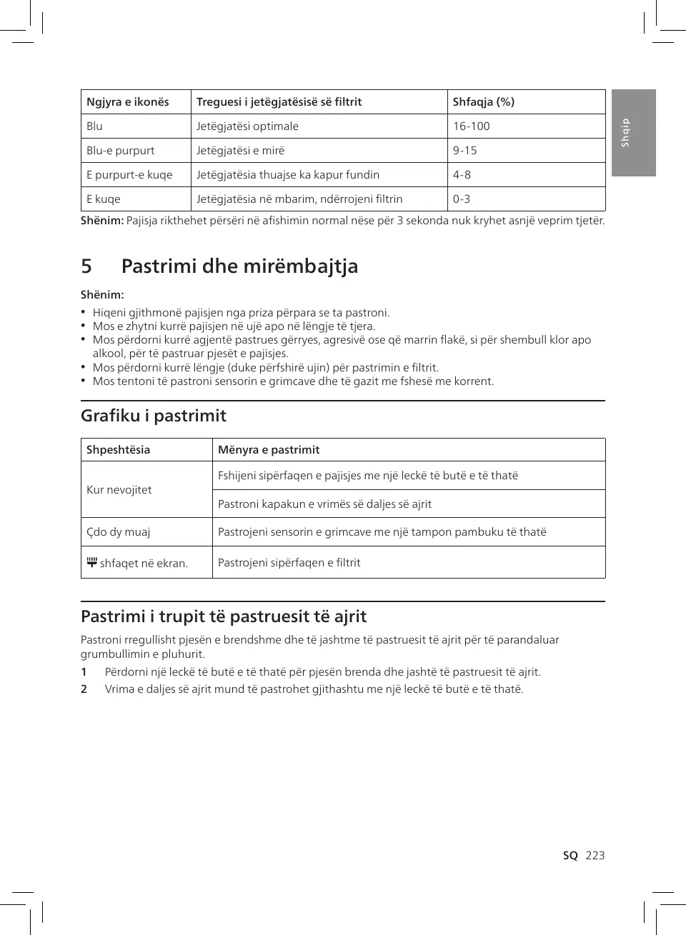 2 Vrima e daljes së ajrit mund të pastrohet gjithashtu me një leckë të butë e të thatë.
