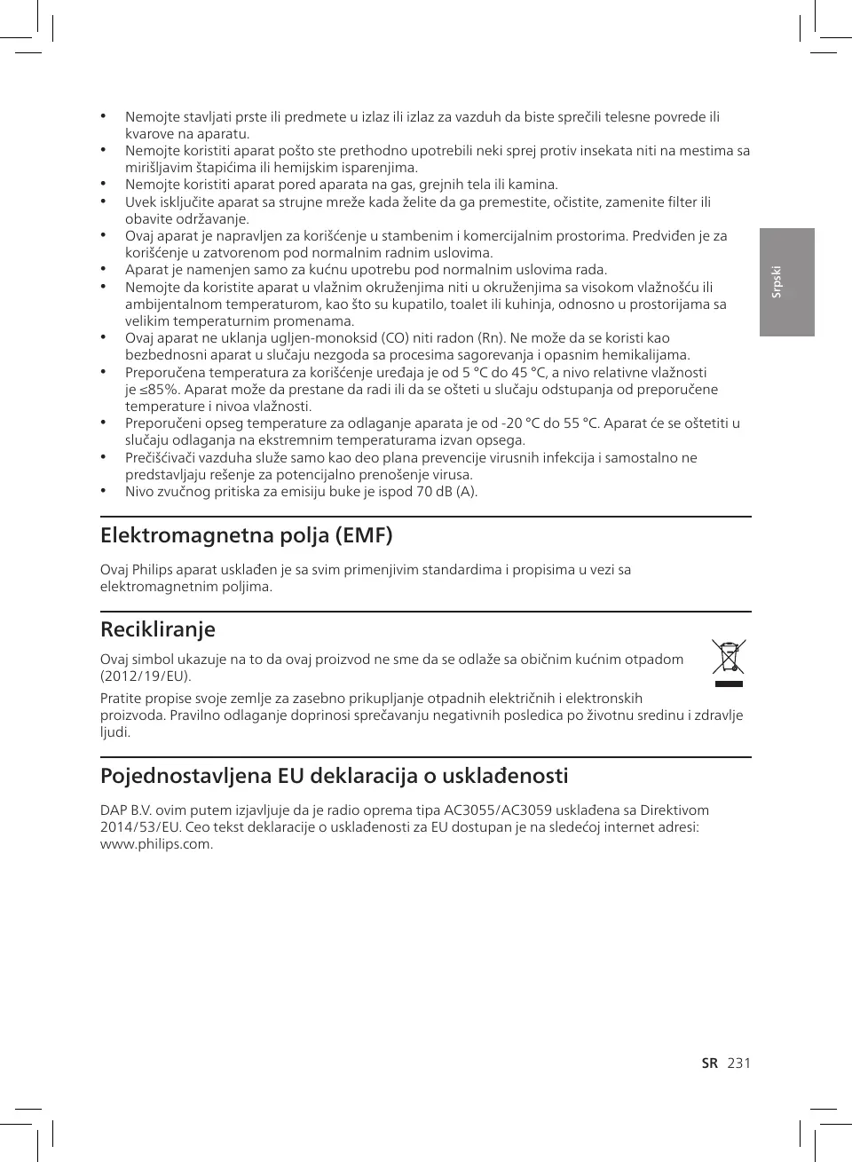 DAP B.V. ovim putem izjavljuje da je radio oprema tipa AC3055/AC3059 usklađena sa Direktivom