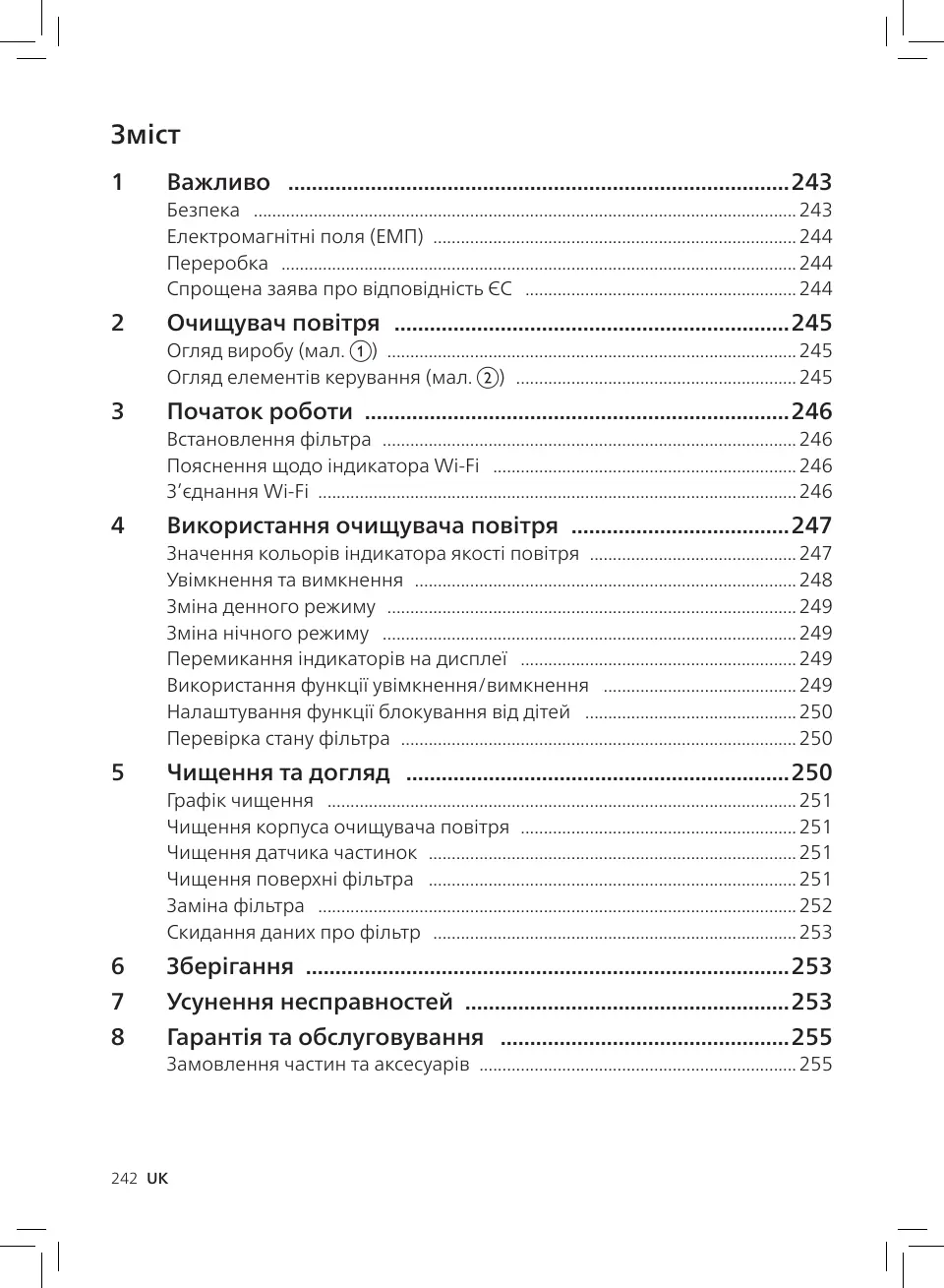 Заміна фільтра �������������������������������������������������������������������������������������������������������� 252