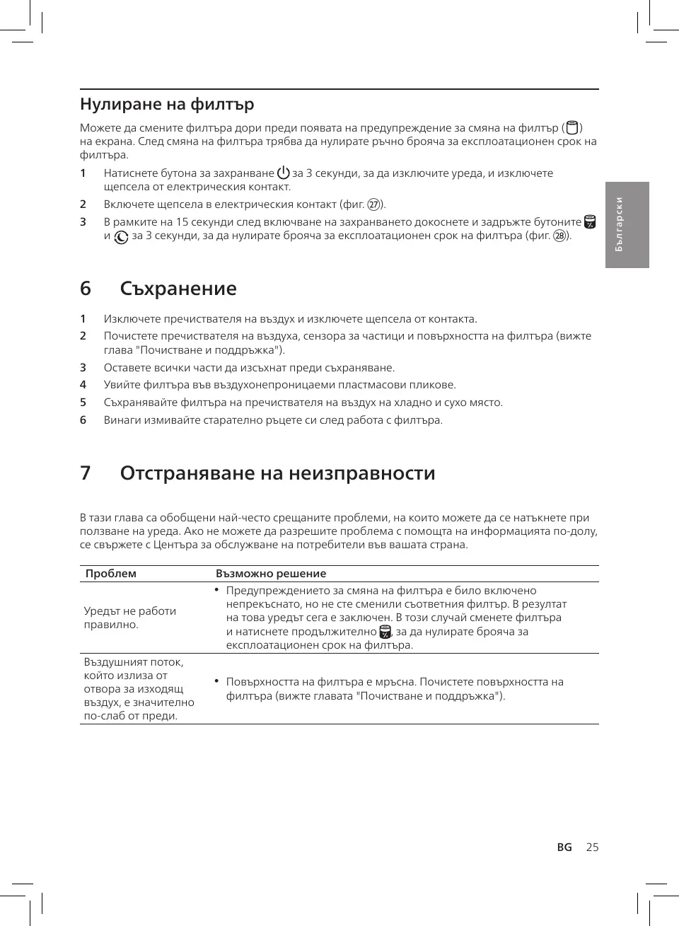 филтъра (вижте главата "Почистване и поддръжка").