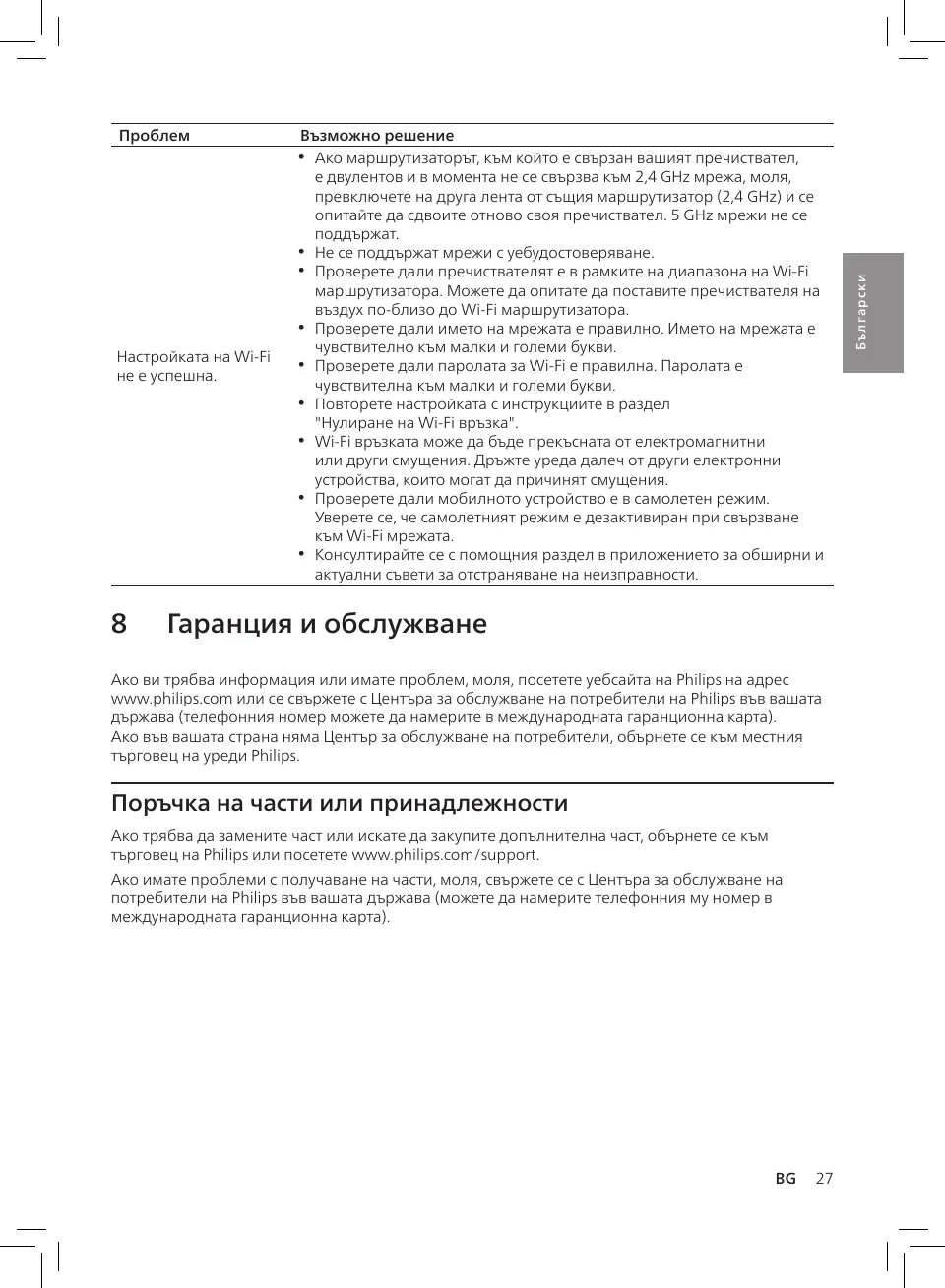 Ако ви трябва информация или имате проблем, моля, посетете уебсайта на Philips на адрес