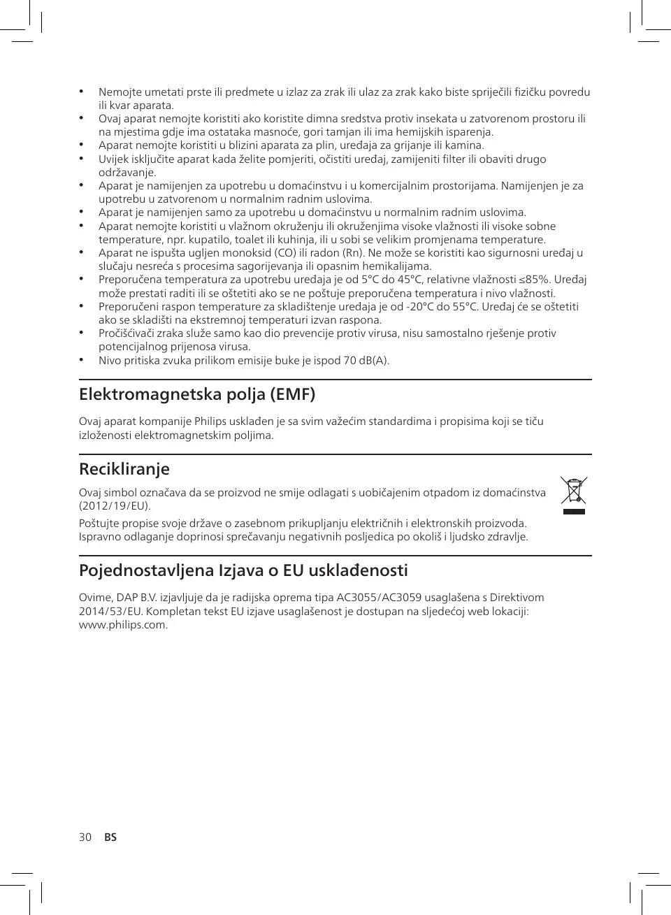 Ovime, DAP B.V. izjavljuje da je radijska oprema tipa AC3055/AC3059 usaglašena s Direktivom
