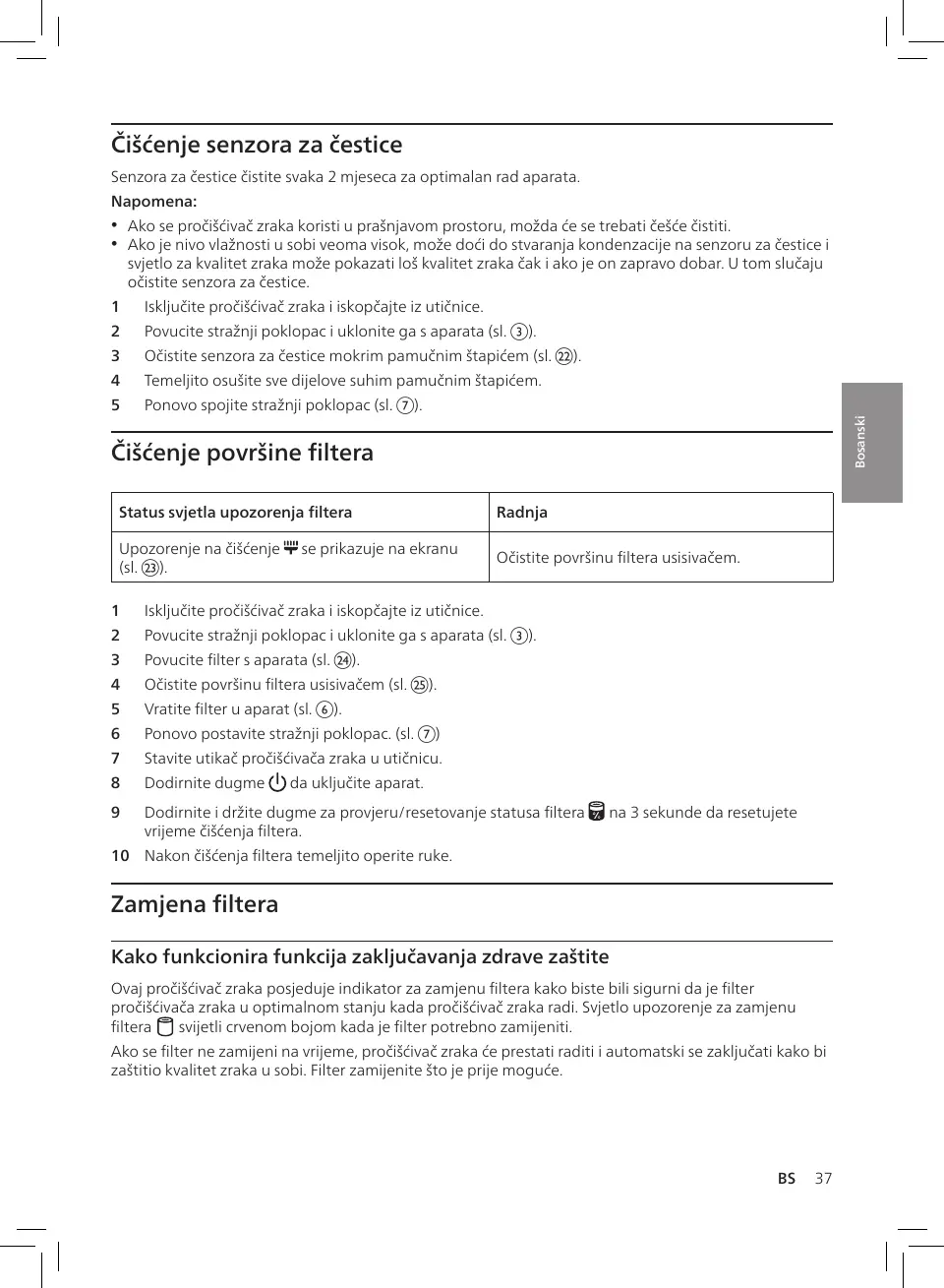 zaštitio kvalitet zraka u sobi. Filter zamijenite što je prije moguće.