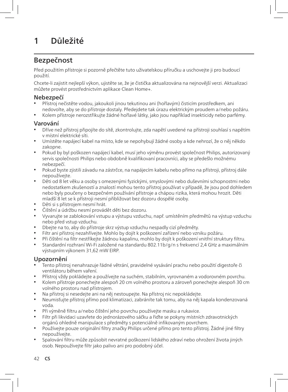 Tento přístroj nenahrazuje řádné větrání, pravidelné vysávání prachu nebo použití digestoře či
