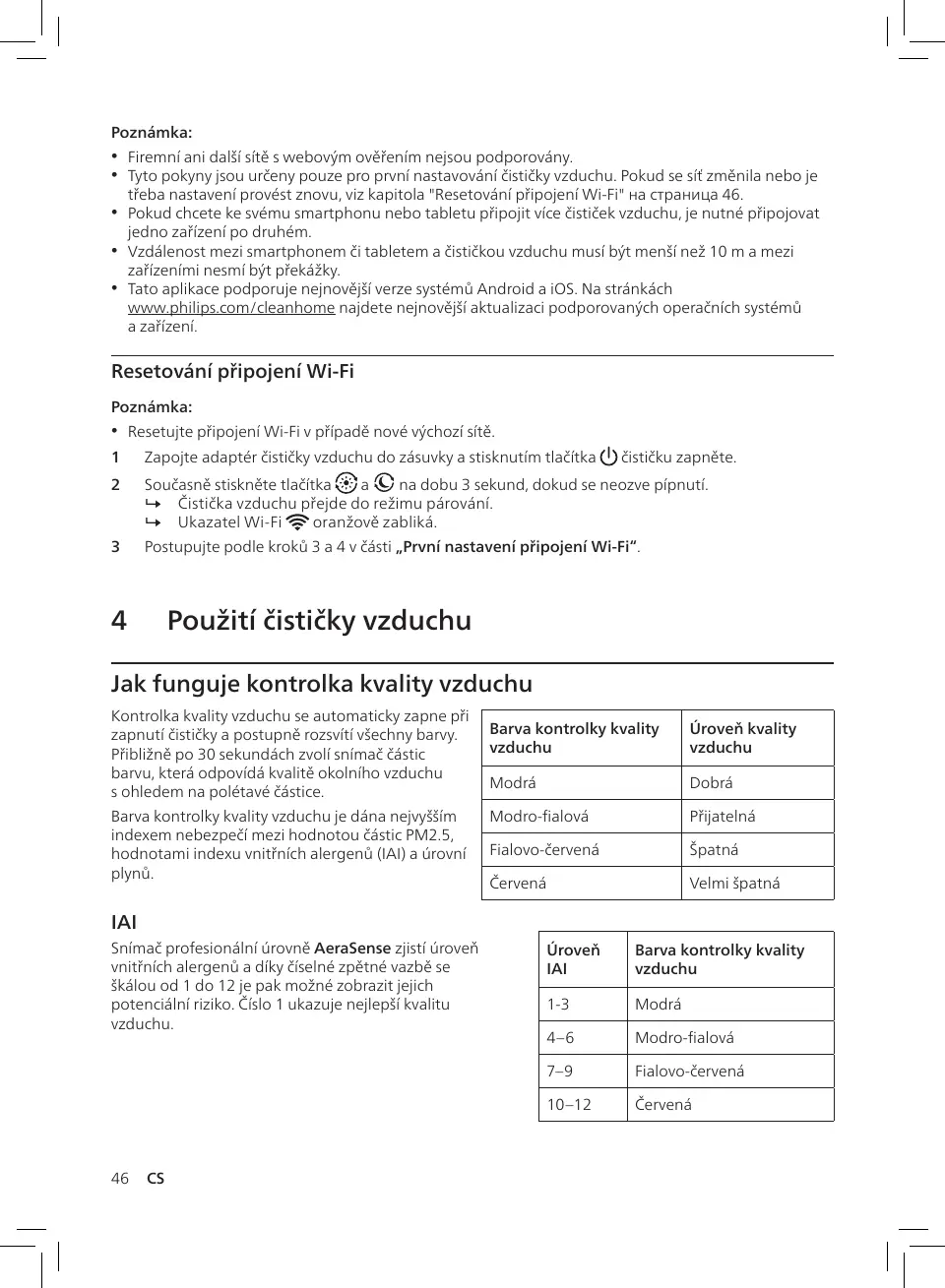 Tyto pokyny jsou určeny pouze pro první nastavování čističky vzduchu. Pokud se síť změnila nebo je
