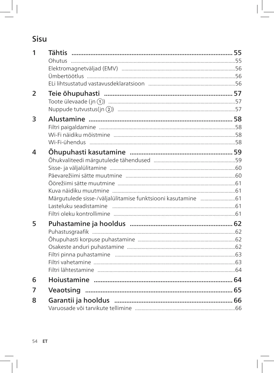 4 Õhupuhasti kasutamine ������������������������������������������������������������ 59