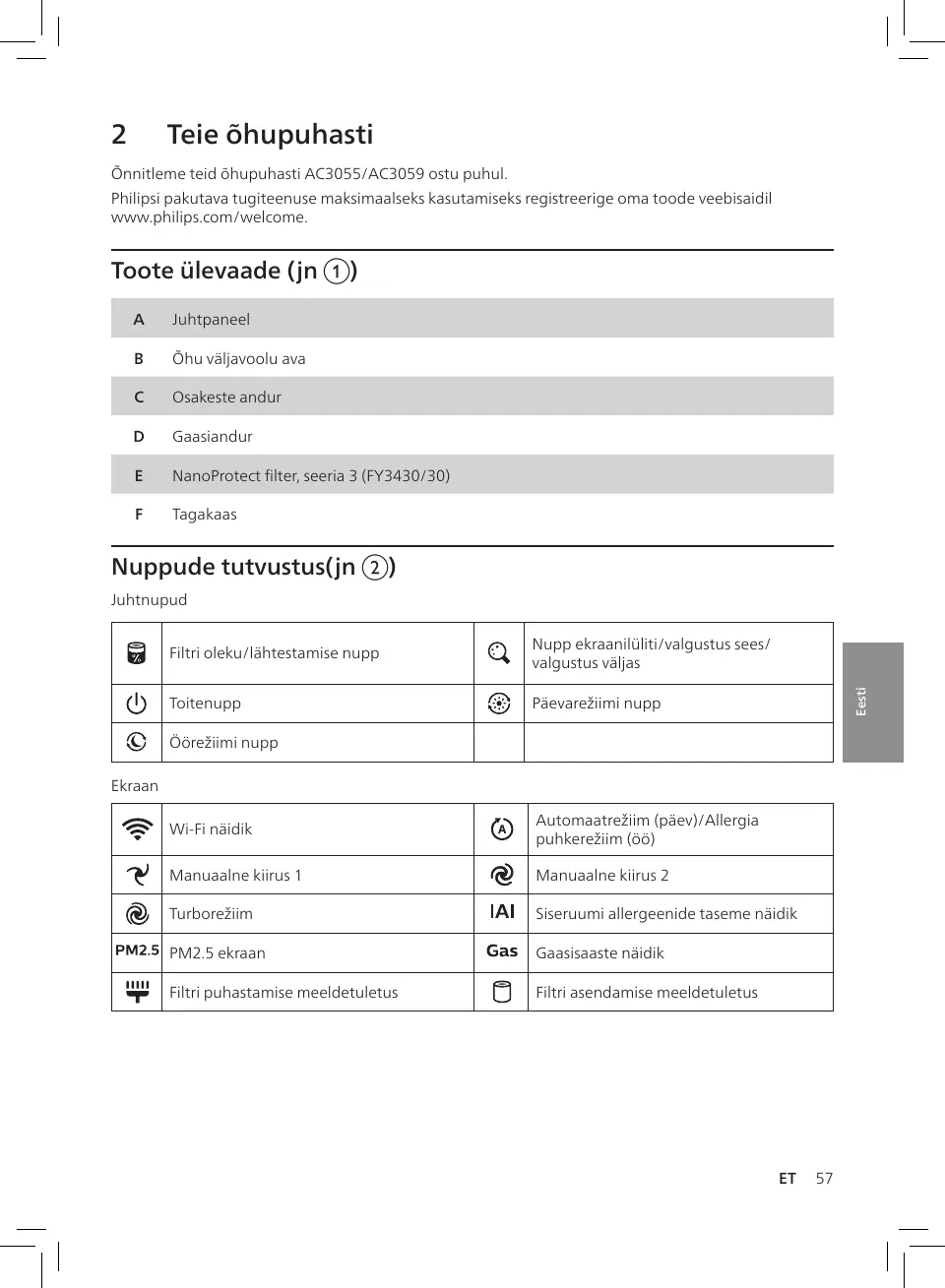 Õnnitleme teid õhupuhasti AC3055/AC3059 ostu puhul.