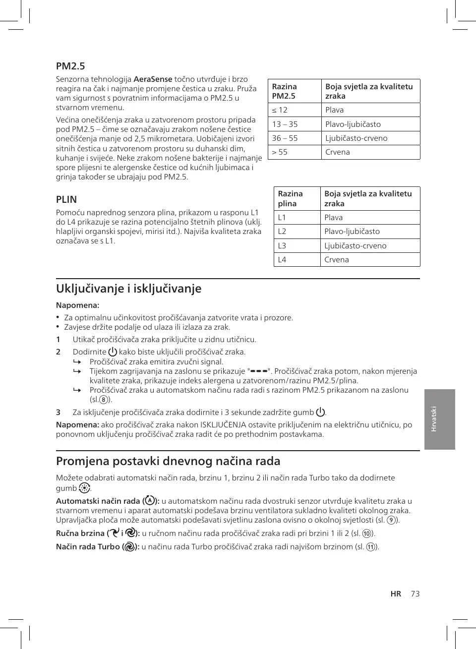Napomena: ako pročišćivač zraka nakon ISKLJUČENJA ostavite priključenim na električnu utičnicu, po