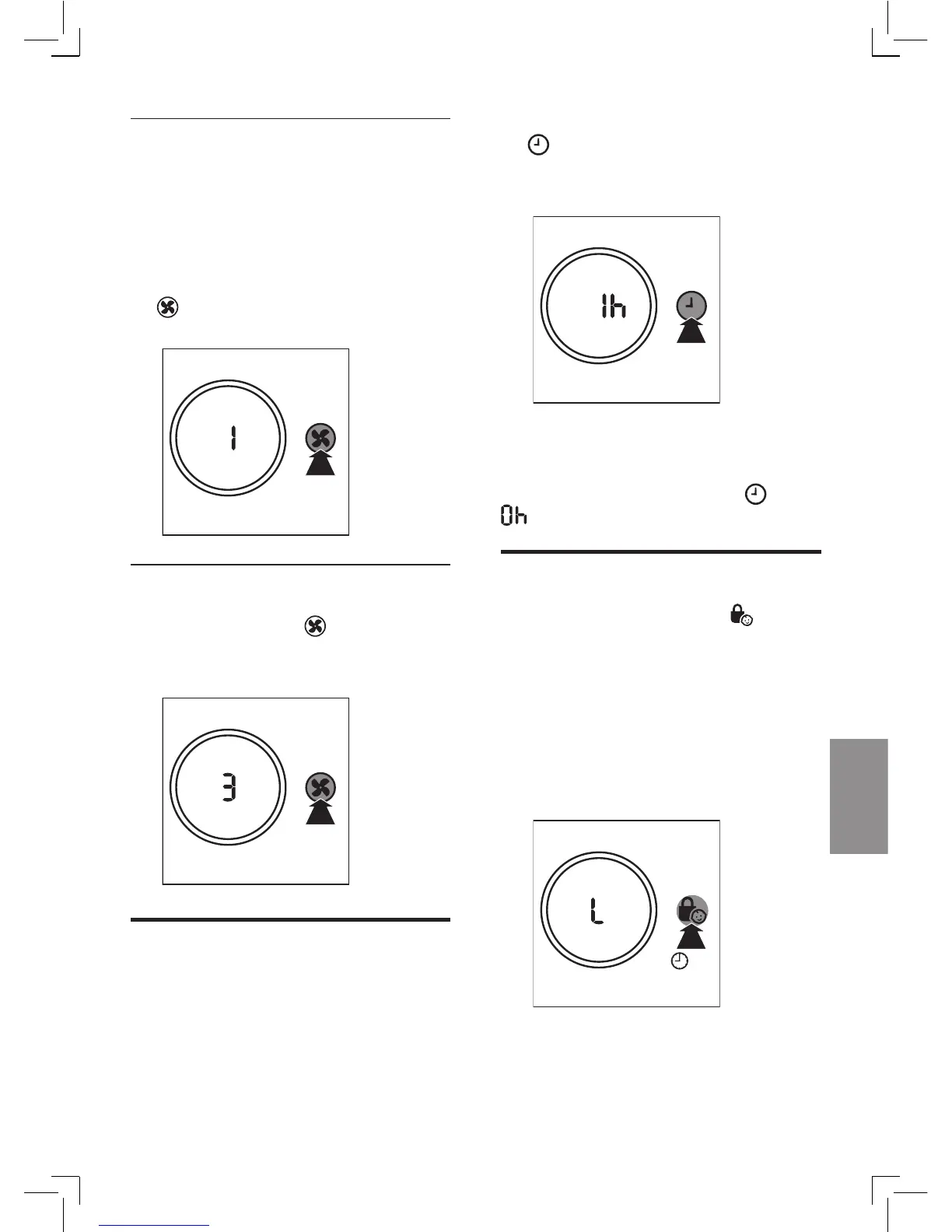 • Druk op de ventilatorsnelheidsknop