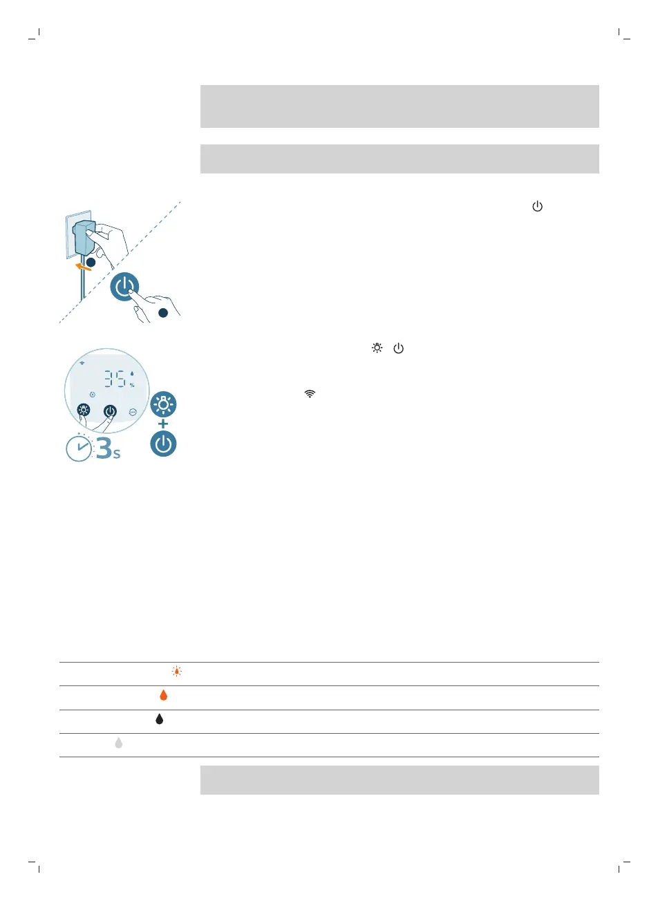 Estable en blanco ( ) El aparato está humidificando la habitación.