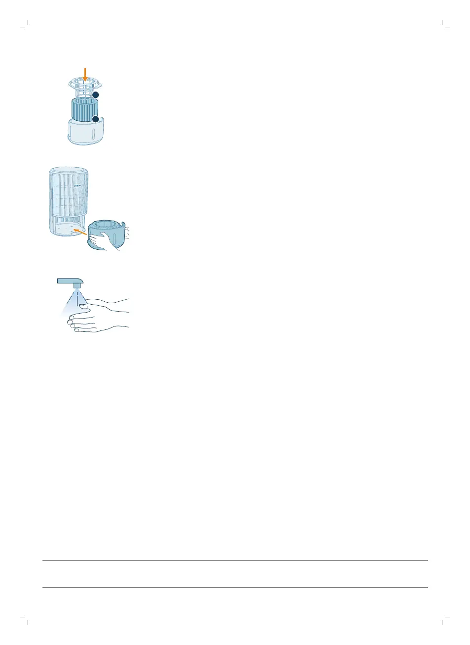 7 Pakeitę filtrą, kruopščiai nusiplaukite rankas.