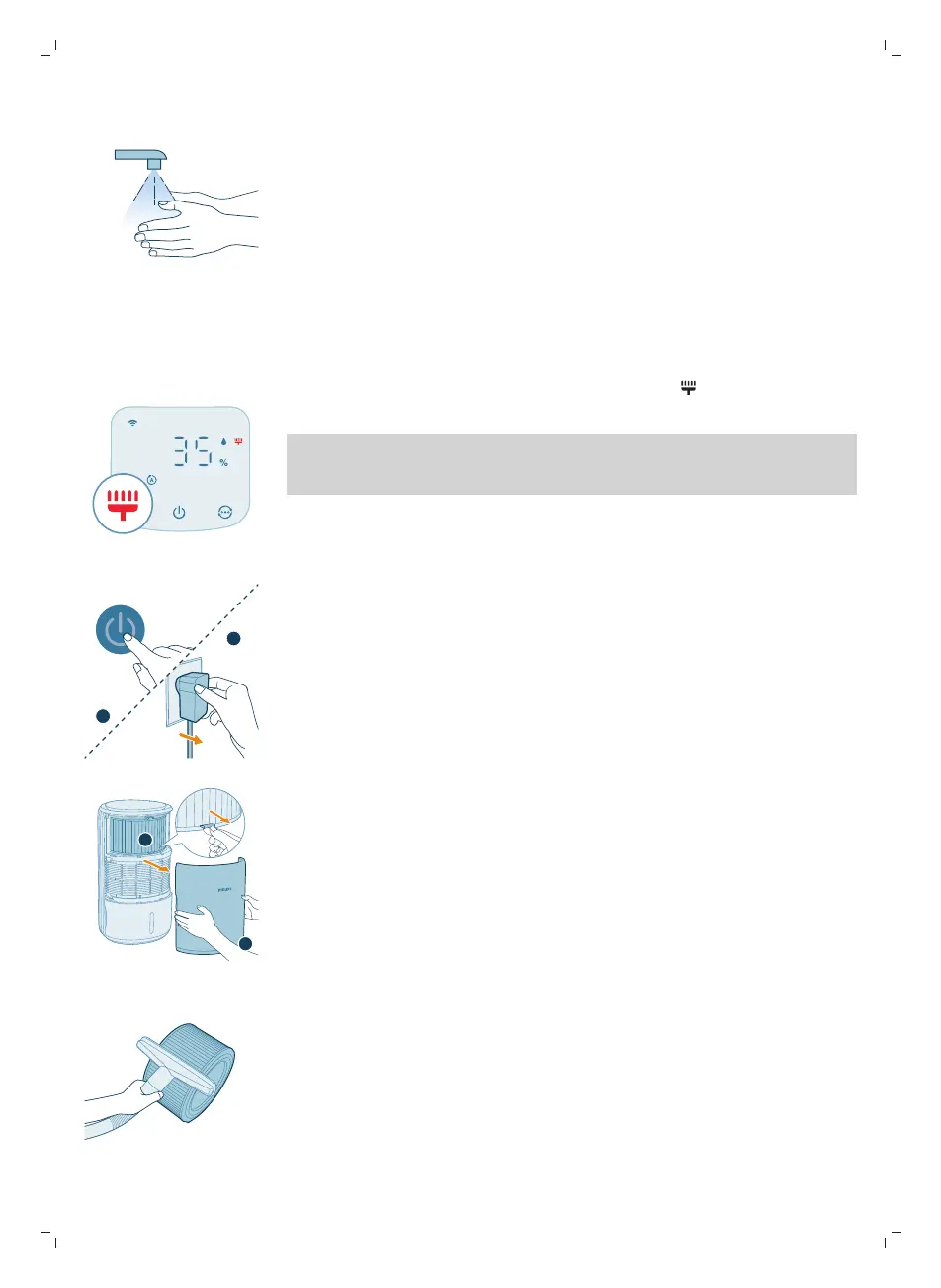 Když se na displeji zobrazí upozornění na vyčištění filtru , vyčistěte povrch filtru