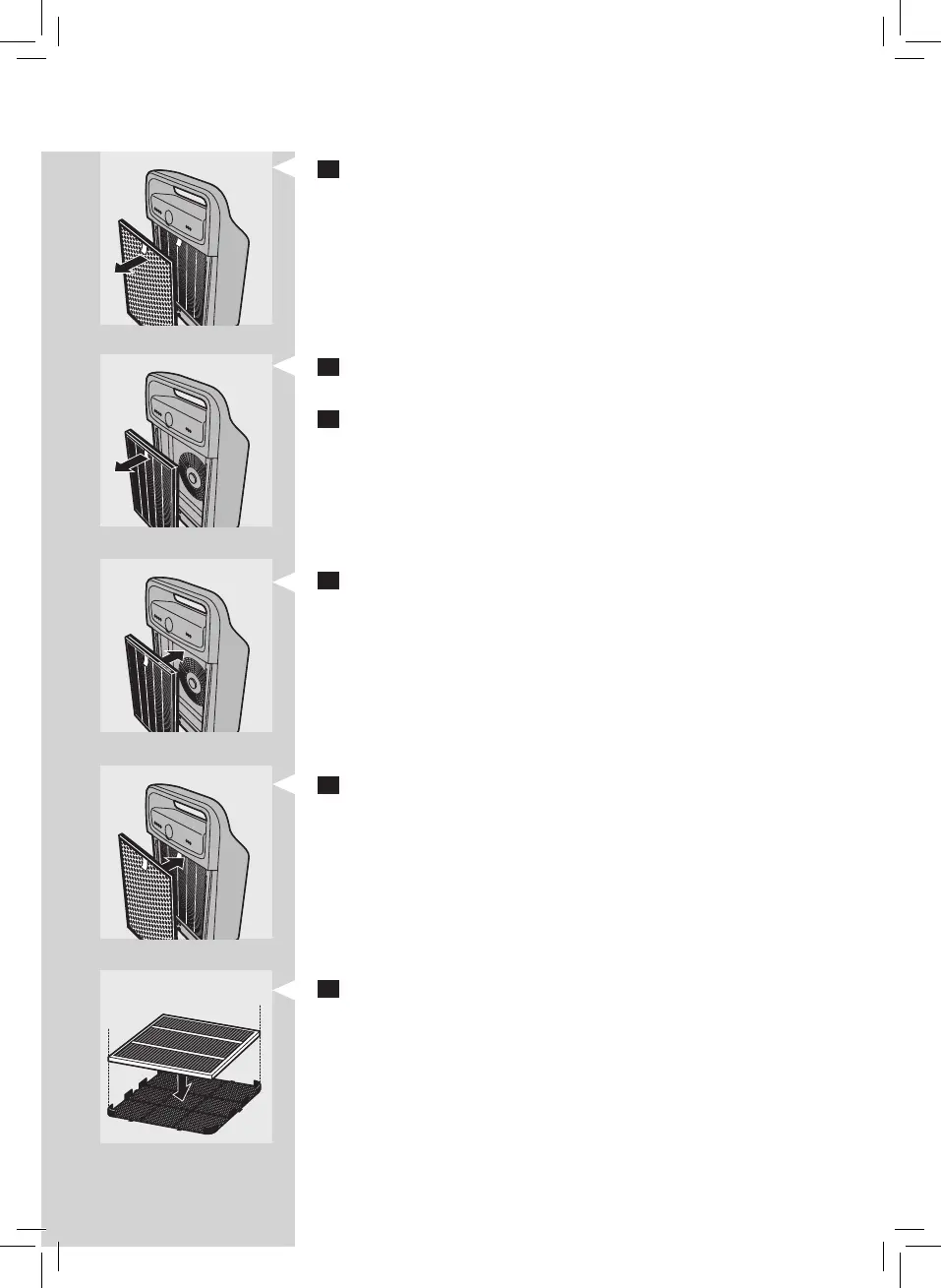 6 Um Filter 4 (den HEPA-Filter) herauszunehmen, fassen Sie ihn an der