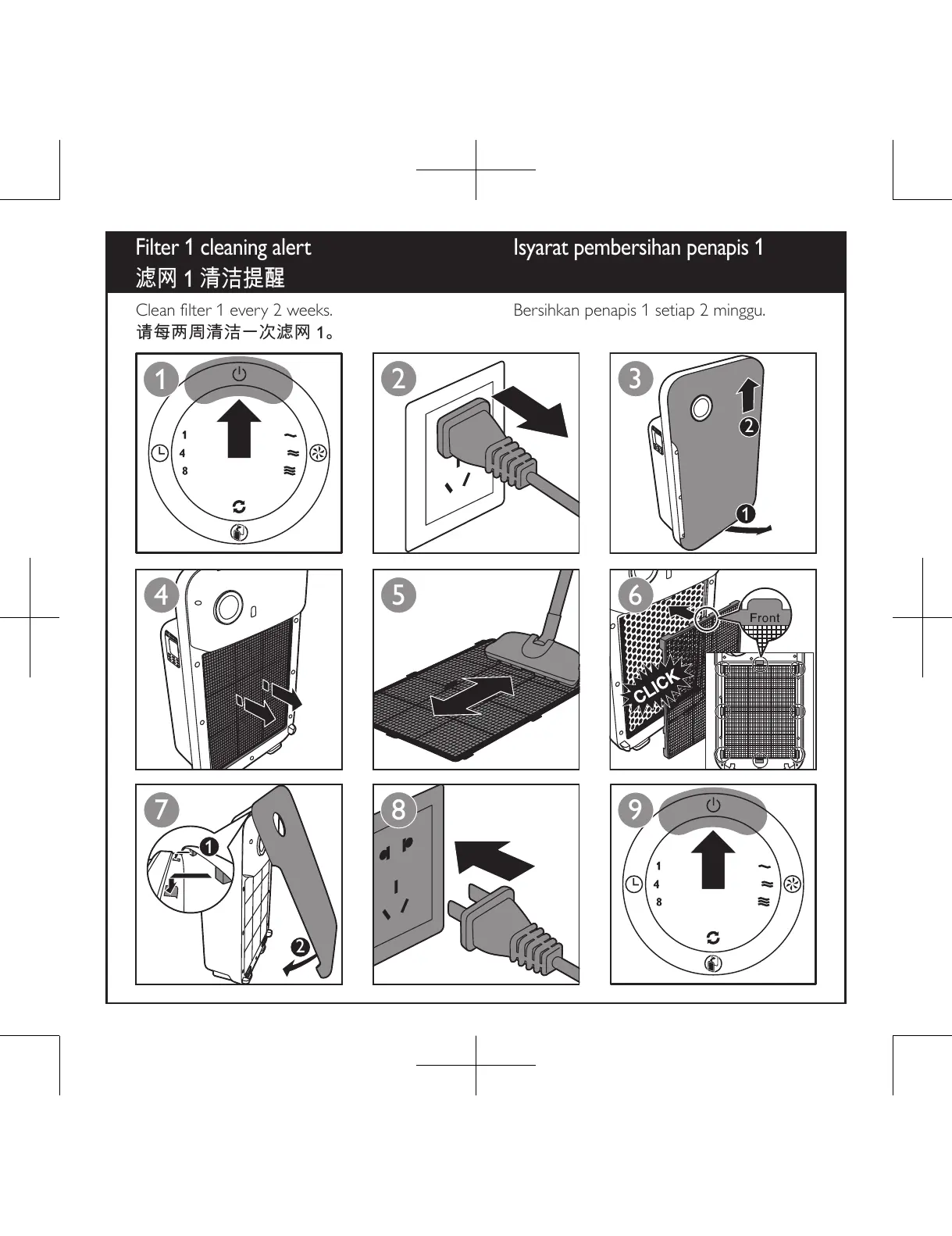 Clean filter 1 every 2 weeks. Bersihkan penapis 1 setiap 2 minggu.