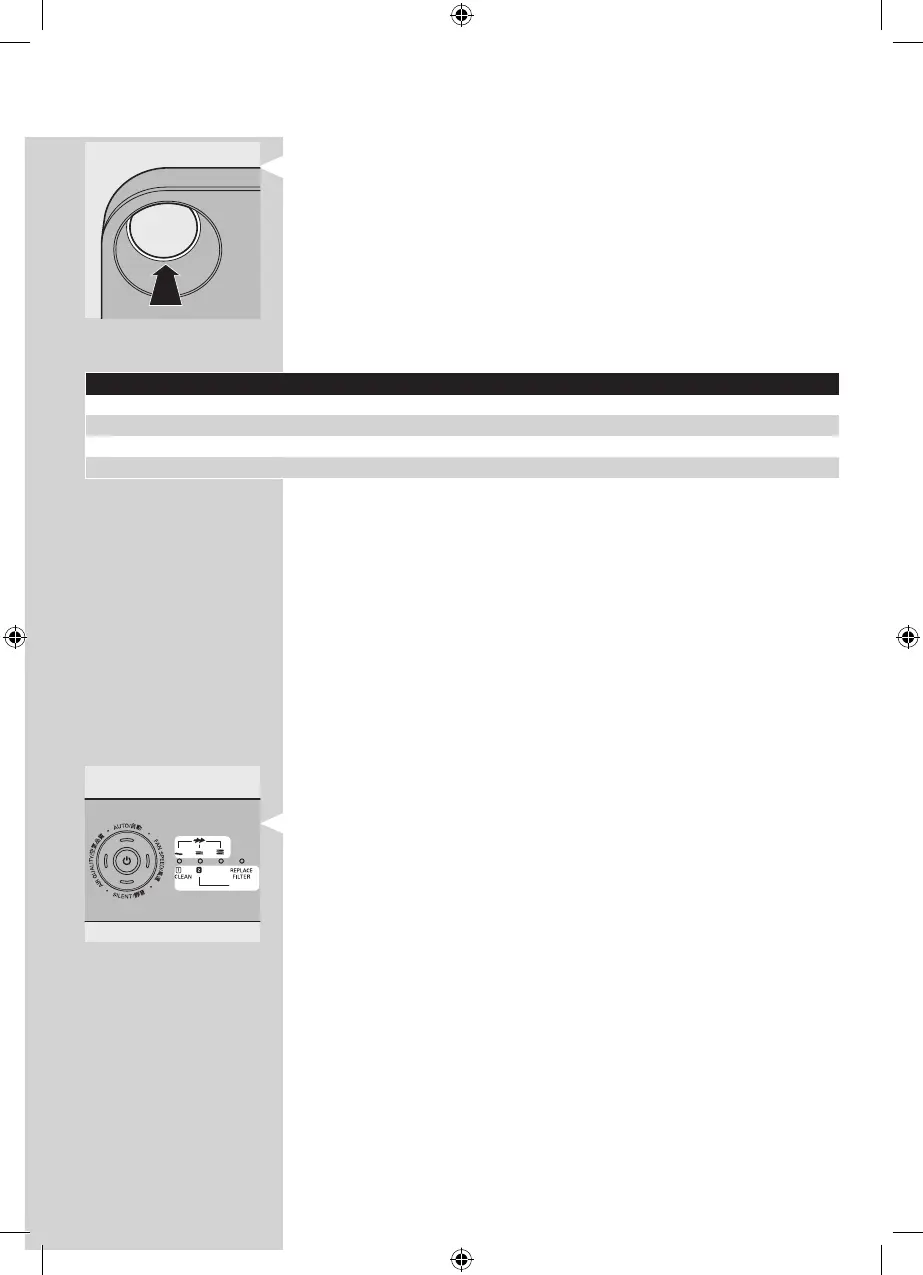 控制面板右側的指示燈有雙重功能:一是指示風速,二是顯示濾