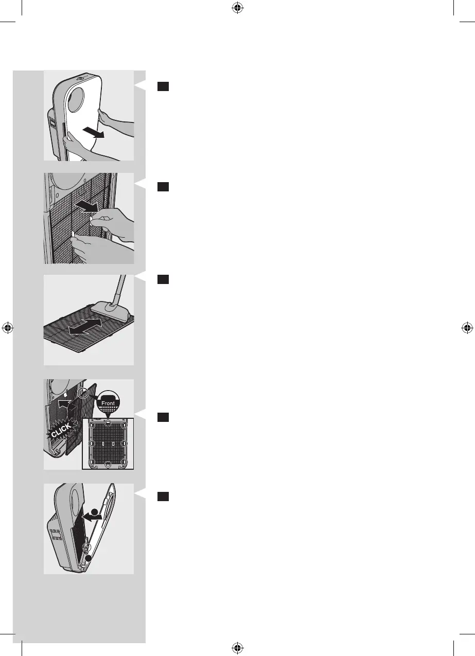 若要取出預過濾網,抓住濾網上兩個凸出部分,朝向自己拉出。