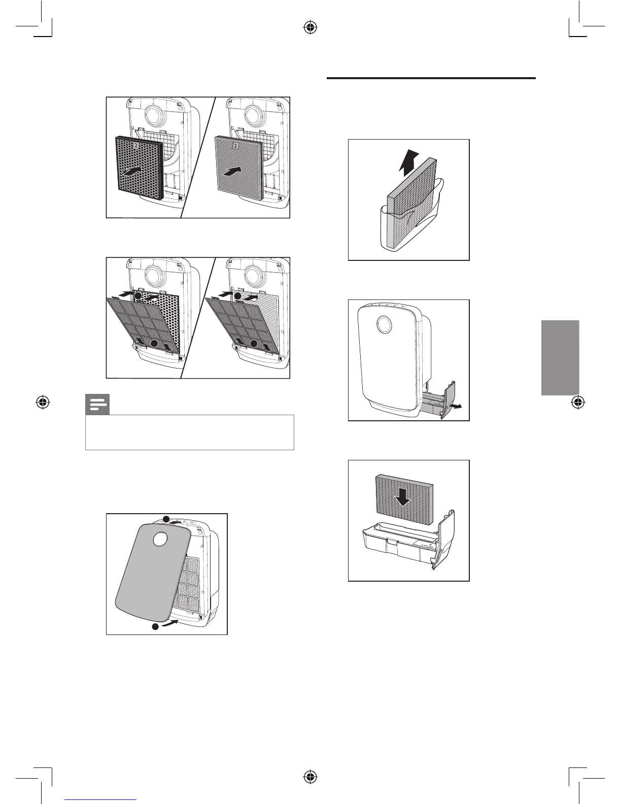 6 將預過濾網放回本產品內。