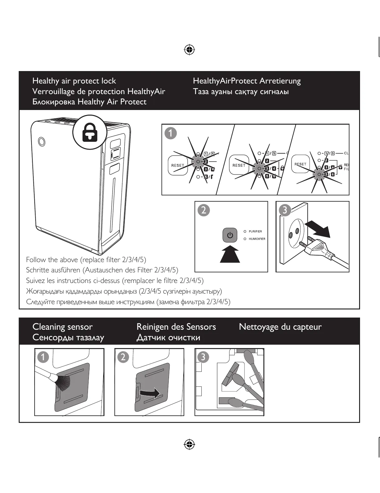 Cleaning sensor Reinigen des Sensors Nettoyage du capteur