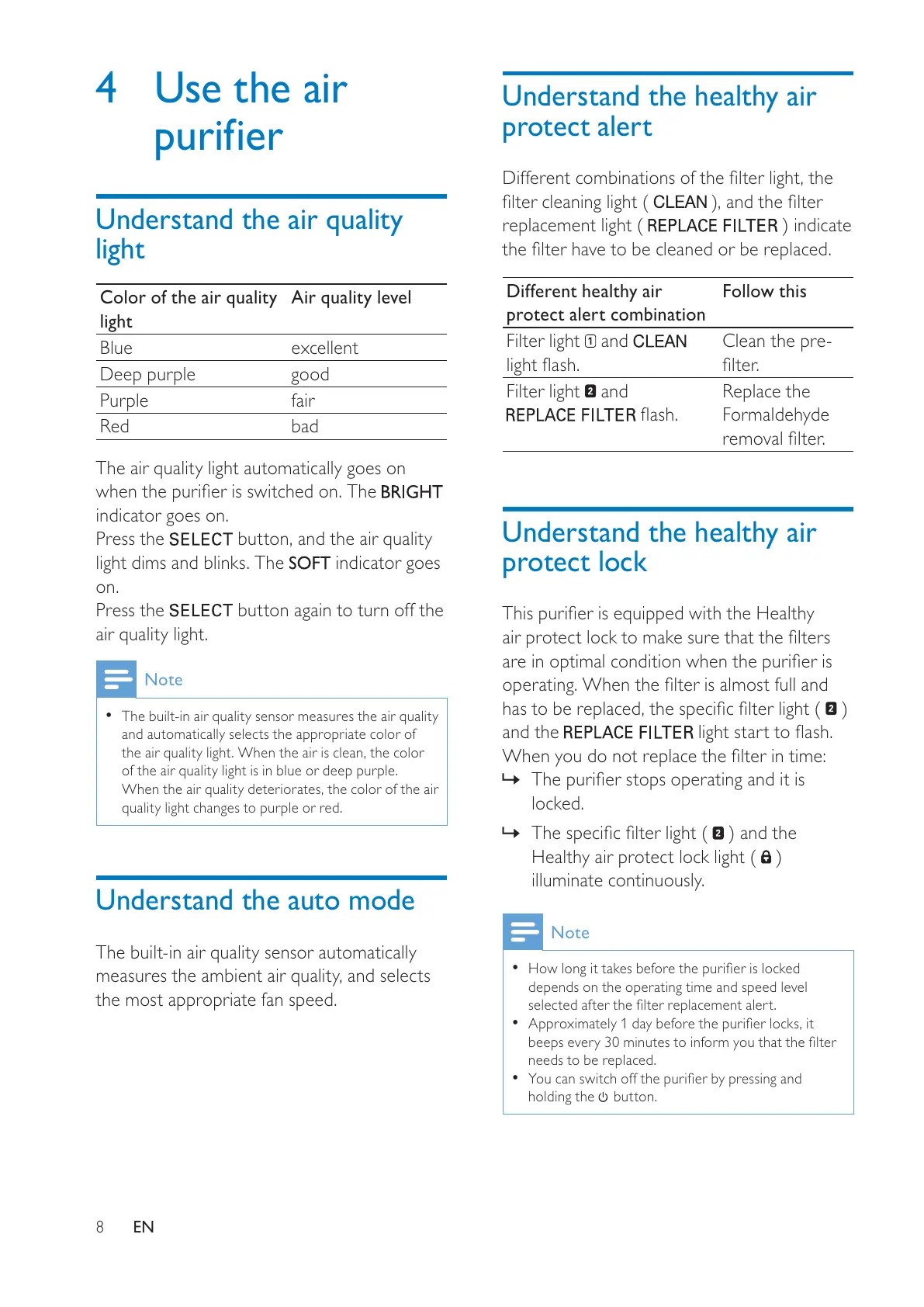 of the air quality light is in blue or deep purple.