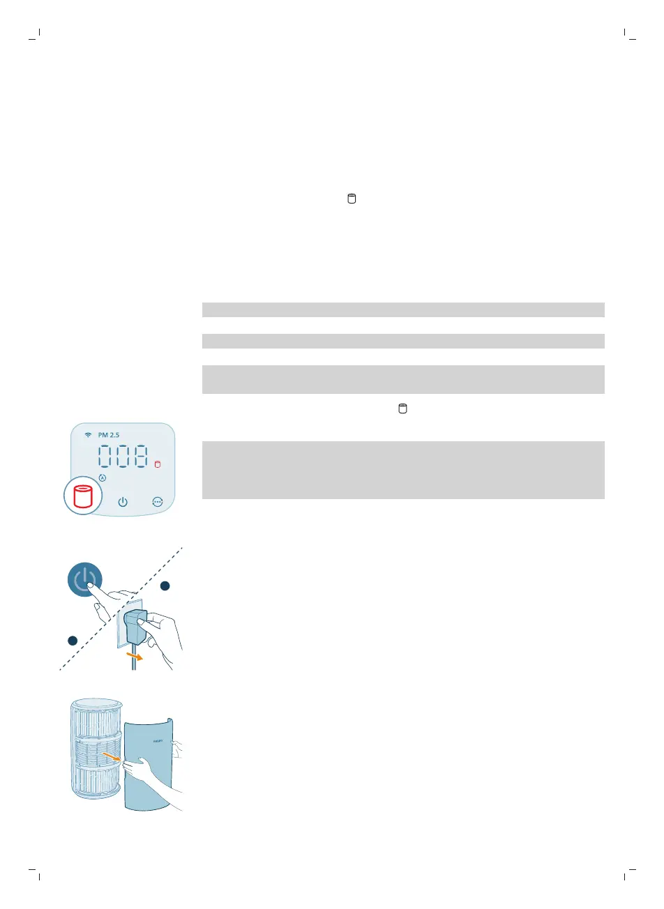 1 Schalten Sie den Luftreiniger aus und ziehen Sie den Netzstecker aus der