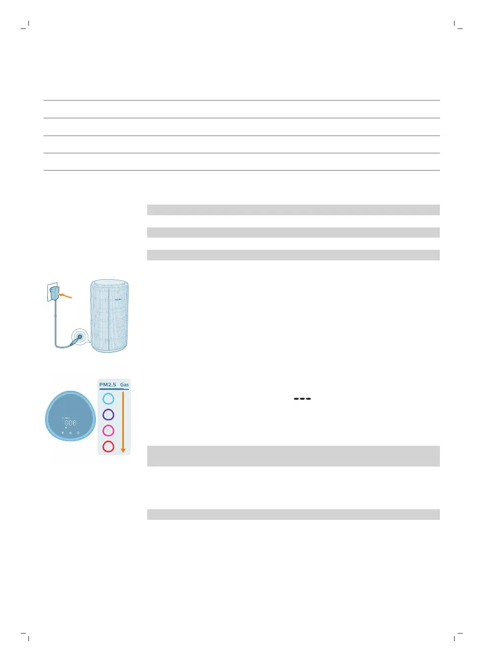 Soojenemise ajal kuvatakse ekraanil „ “. Seejärel kuvab õhupuhasti pärast
