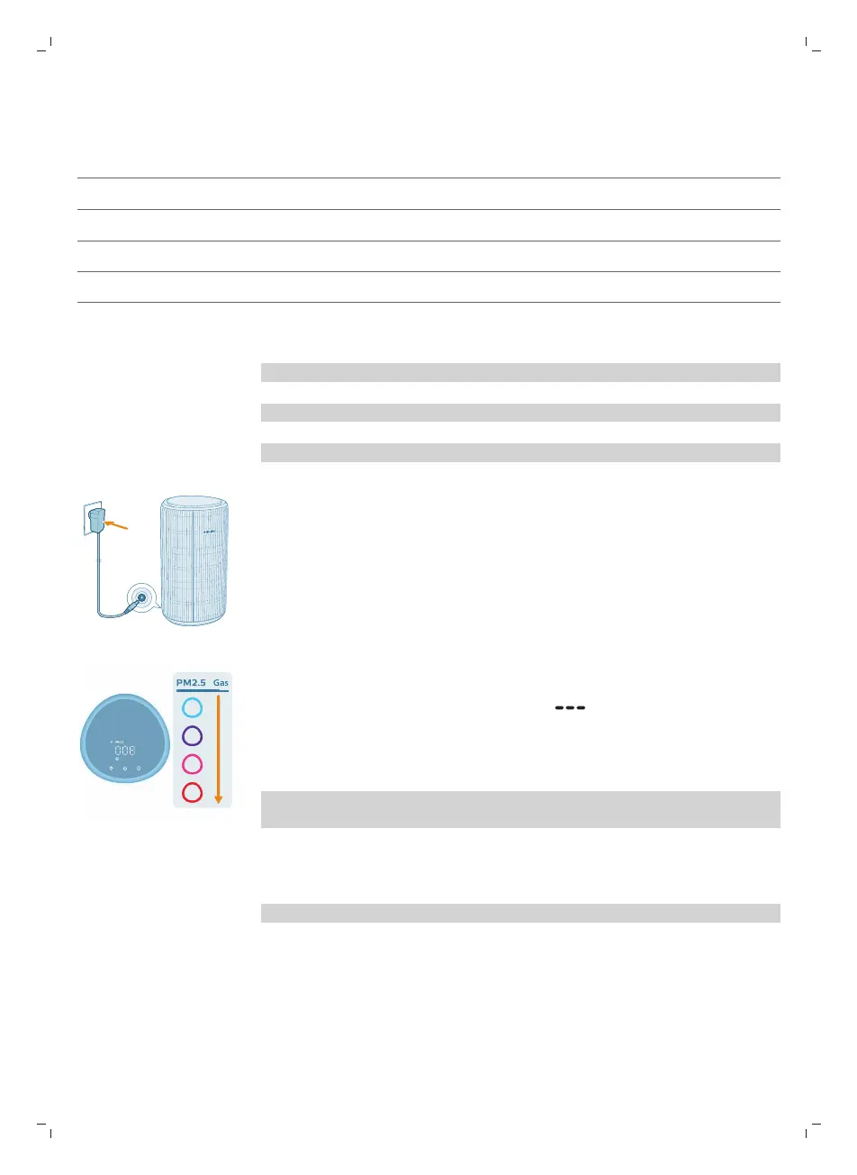 Ierīces ieslēgšanās laikā ekrānā tiek rādīts “ ”. Pēc tam gaisa attīrītājs