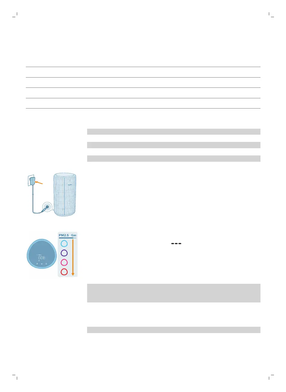 1 Csatlakoztassa a légtisztító hálózati dugóját a fali aljzatba.
