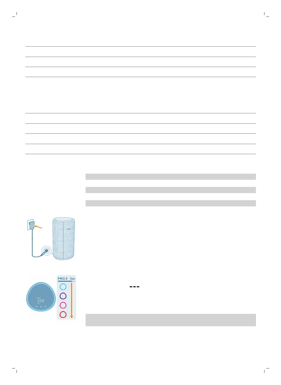 1 Futni spinën e pastruesit të ajrit në prizën elektrike.
