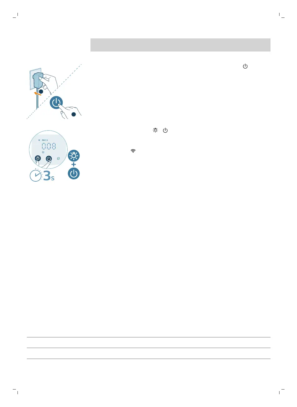 1 Zapojte zástrčku čističky vzduchu do zásuvky astisknutím tlačítka čističku