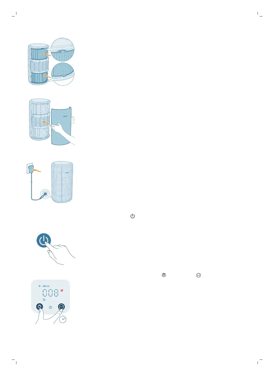 7 Συνδέστε το τροφοδοτικό της συσκευής καθαρισμού αέρα στην πρίζα.